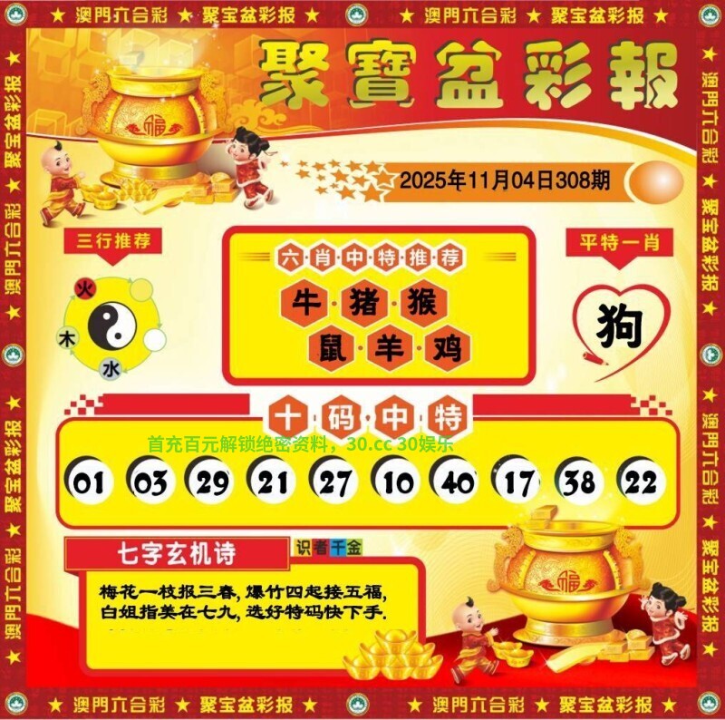 307期:七字玄机诗【今期生肖有木头,取得水库有钱收。六畜再旺在家中,有钱无米能过冬。】 |