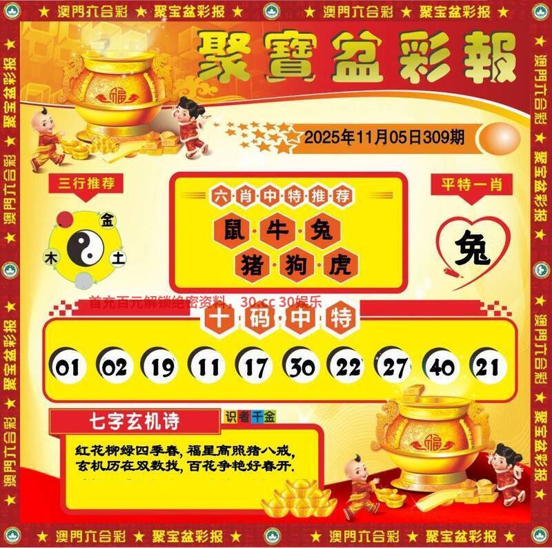 309期:七字玄机诗【红花柳绿四季春,福星高照猪八戒。玄机历在双数找,百花争艳好春开。】 |